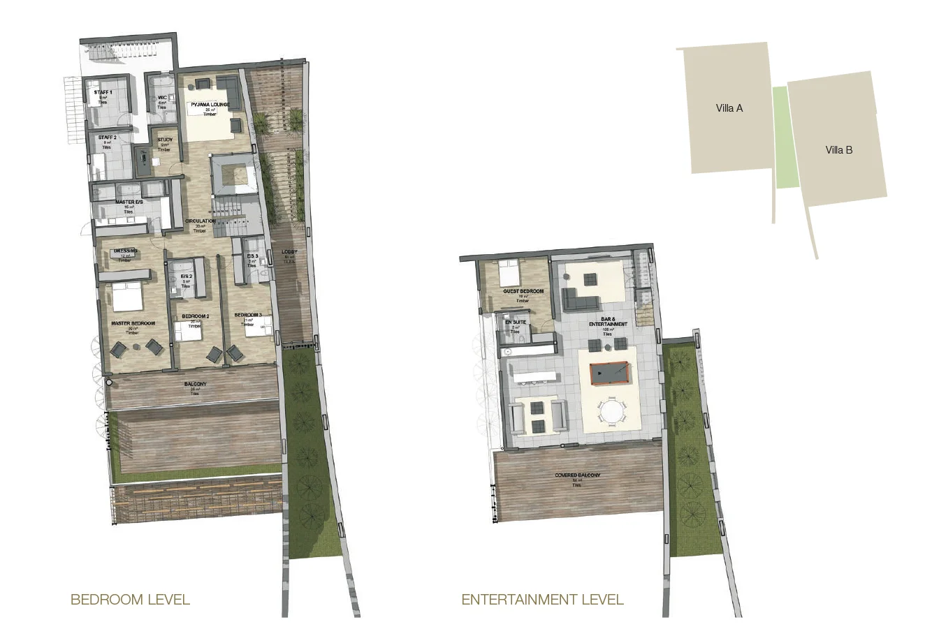 Internal areas: 564m2, Covered balcony: 110m2, Balcony: 61m2, Roof parking: 245m2, Gross area = 980m2